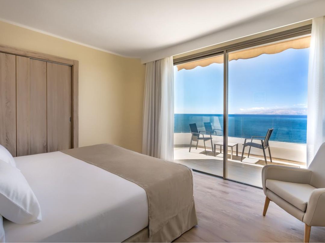 Tutte le camere vista mare, spaziose e arredate in modo moderno ed elegante, regalano meravigliosi panorami dal proprio terrazzo o balcone con vista sul mare, o su una delle 3 piscine o sul Teide, e sono dotate di aria condizionata, piccolo salottino, Wi-Fi, Tv al plasma e un minibar.