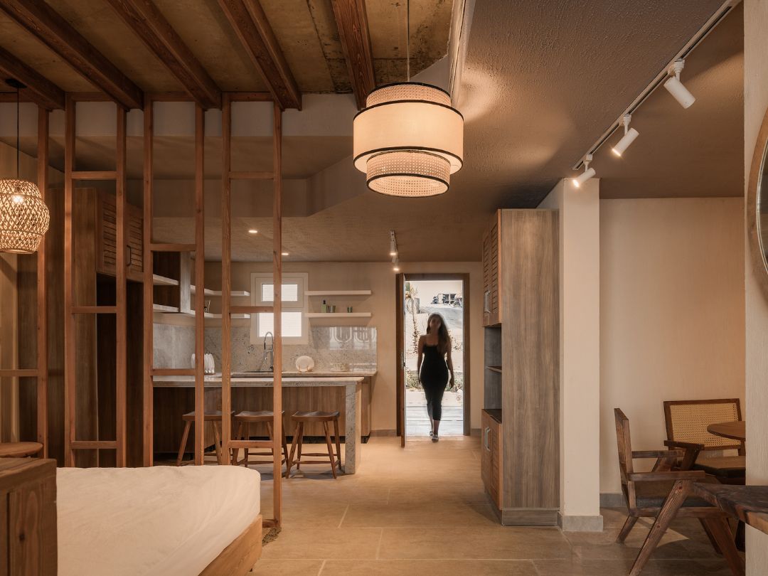 La spiaggia privata del resort si affaccia su una baia di sabbia fine e acque cristalline, perfetta per nuotare e praticare sport acquatici. Lettini, ombrelloni e teli mare sono disponibili per gli ospiti. L’accesso al mare è digradante.