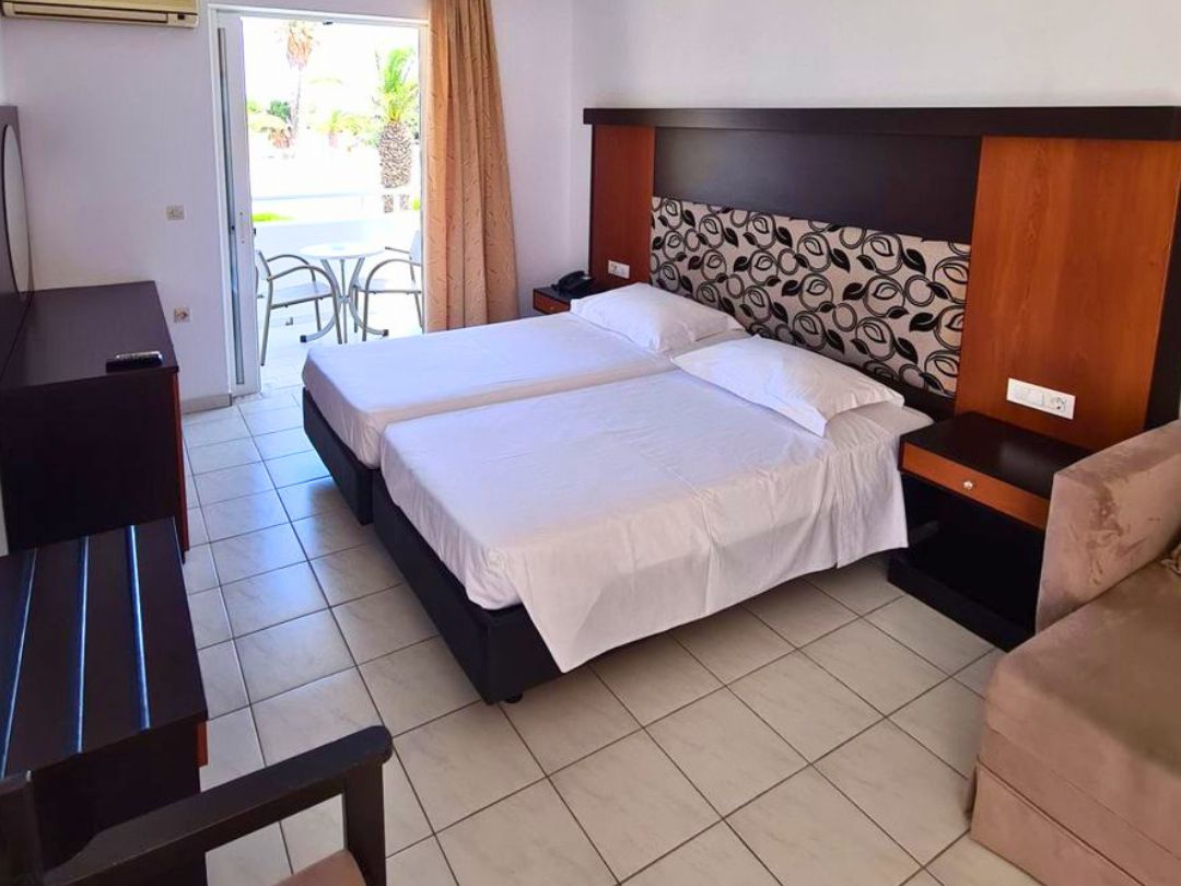 L’hotel dispone di 181 camere distribuite tra un edificio principale e 13 edifici secondari. Le camere standard vista piscina offrono letto gemello, angolo cottura, balcone o terrazza, aria condizionata regolabile (da giugno a settembre), connessione Internet, cassaforte (a pagamento) e bollitore (eventualmente a pagamento). Il bagno è dotato di doccia e gli asciugamani vengono cambiati tre volte a settimana.