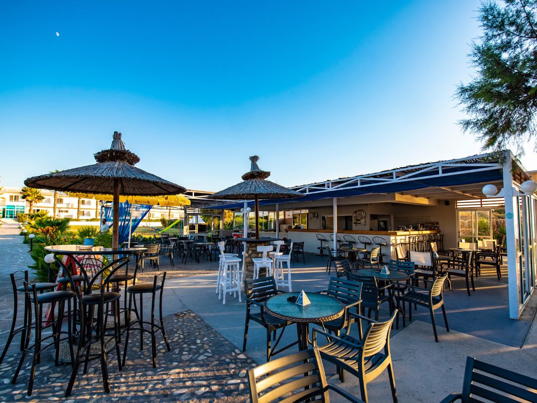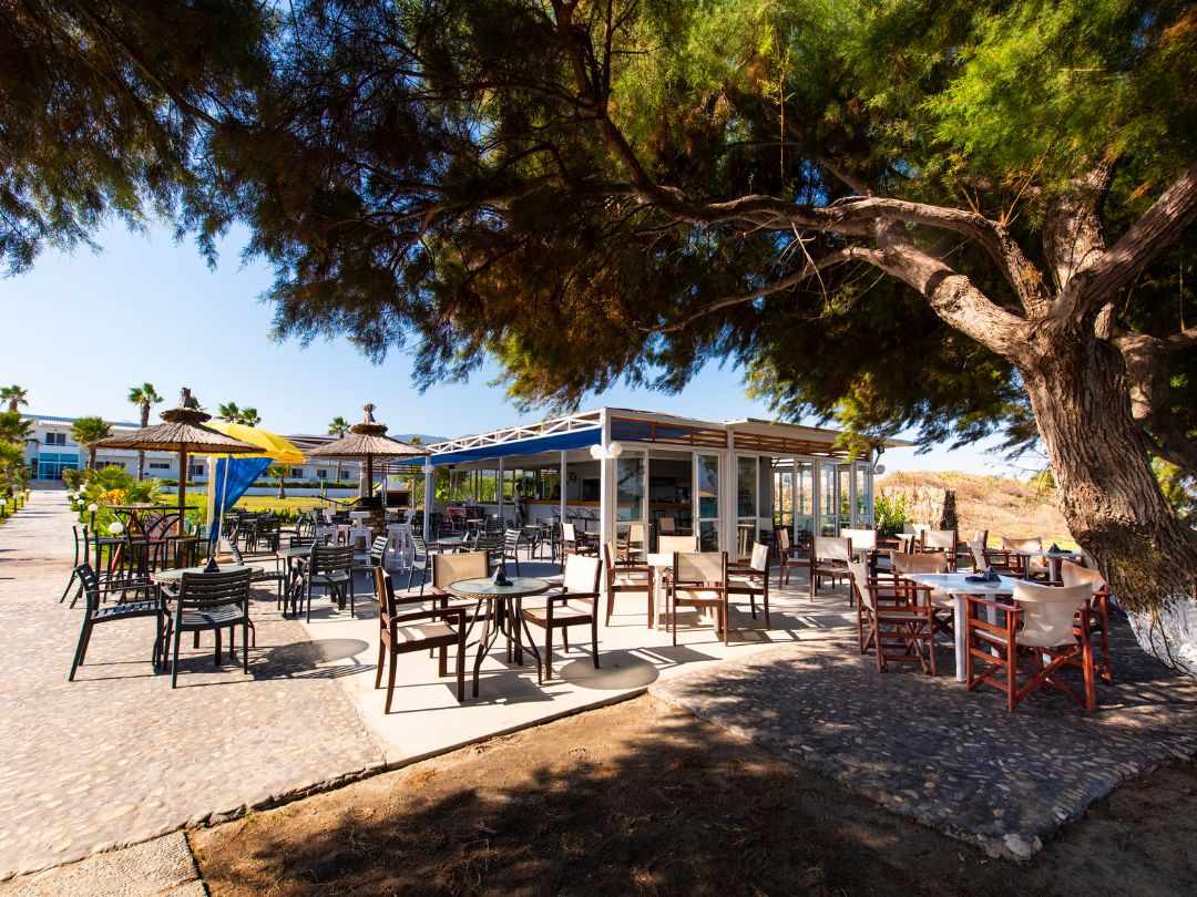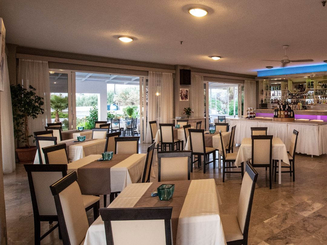 Il trattamento previsto è Bed & Brekfast con la colazione servita a buffet. Sulle grandi terrazze che si affacciano sul mare o sulle piscine e sui giardini, si può godere dei piatti tradizionali greci e ricette mediterranee o un bicchiere di Retsina, ammirando il tramonto. Al bar della spiaggia si può godere di succhi di frutta, cocktail rinfrescanti, frutta, snack, o un pasto leggero.