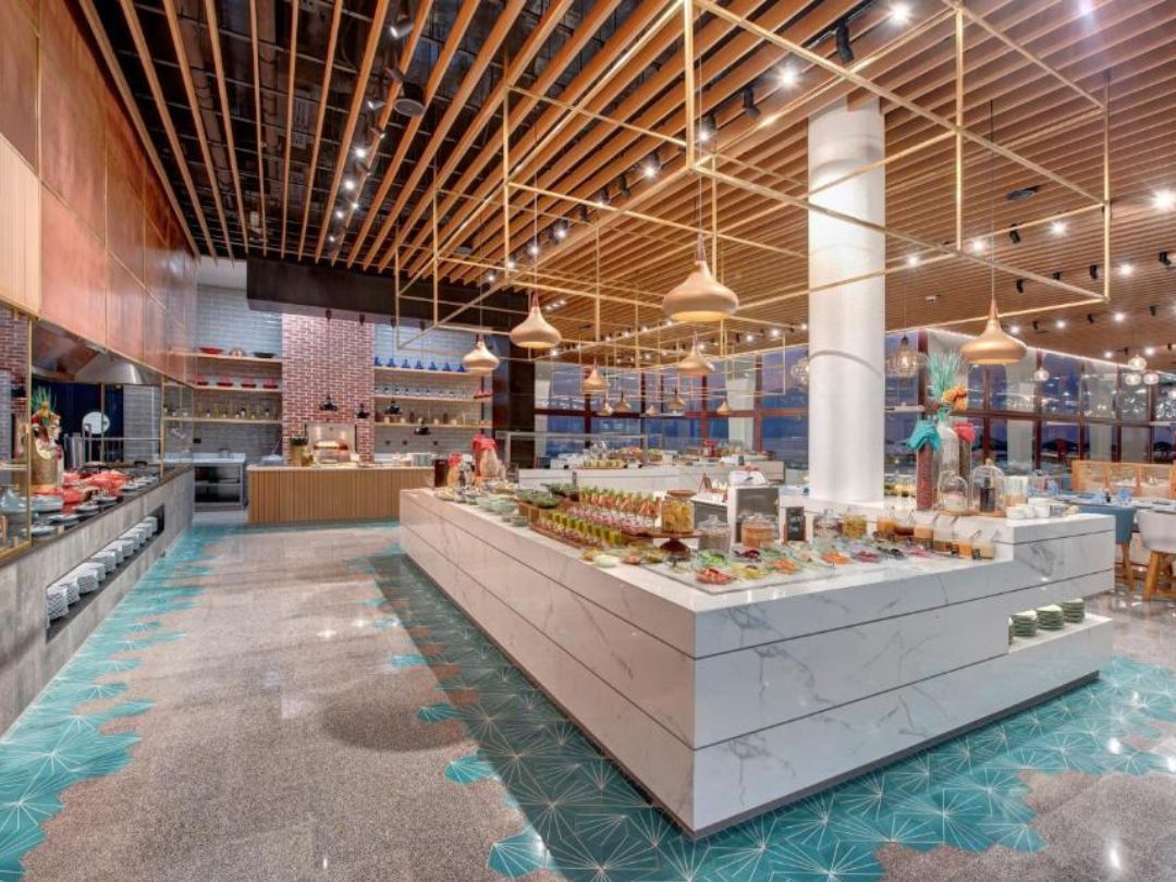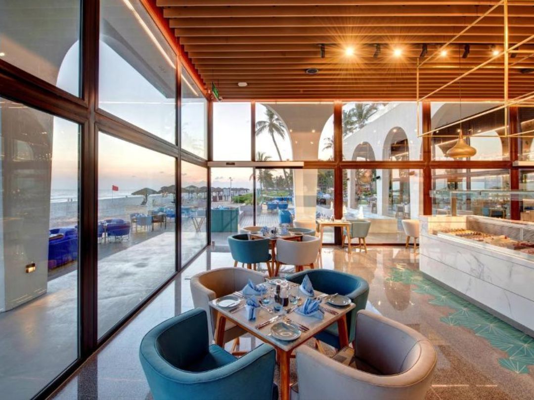 Il trattamento previsto è di pensione completa con bevande ai pasti servite al bicchiere (acqua e soft drink al bicchiere). Sono presenti 3 ristoranti di cui uno principale “Darbat” che offre piatti internazionali serviti a buffet; a pagamento, due ristoranti à la carte presso la spiaggia, il Dolphin Terrazza pizzeria italiana e l'Ocean Blue Beach House con specialità della cucina medio-orientale e live
