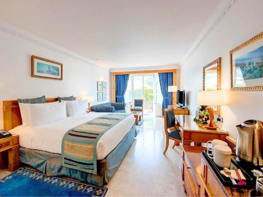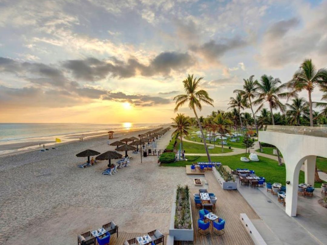Resort internazionale di alto livello, con camere ampie e luminose e aree comuni decorate con vetrate colorate e rosoni ispirati alla vita degli Areesh, popolazione beduina locale. Tra i più caratteristici della zona, è una vera oasi nel deserto, immersa in un palmeto curato e affacciata sulla lunga spiaggia bianca di Salalah e sul mare turchese.
