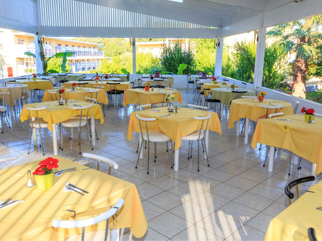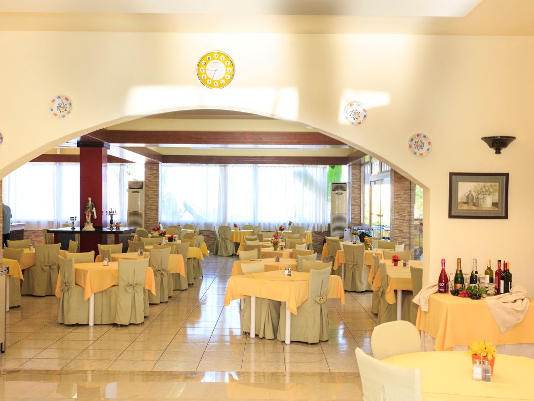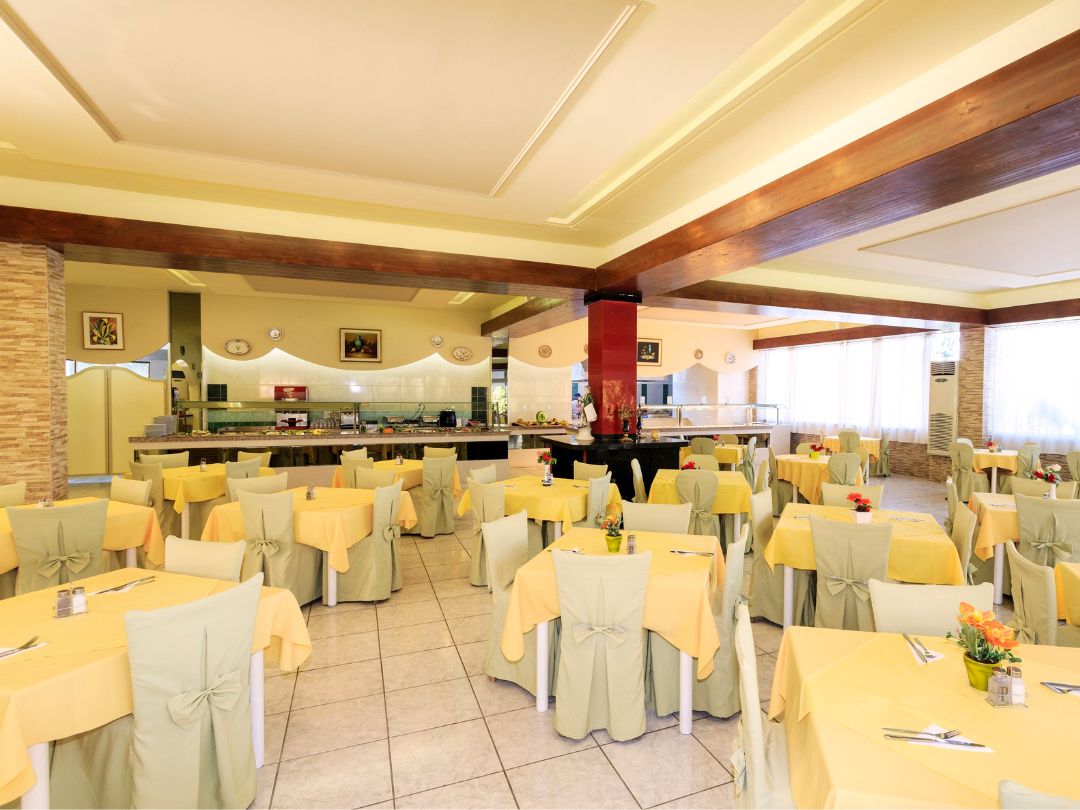 Il Trattamento previsto è All Inclusive con colazione, pranzo e cena a buffet. Incluse bevande analcoliche, birra, vino, tè e caffè (10:00–23:00), snack, dolci e alcolici locali in orari prestabiliti. Presente bar piscina.