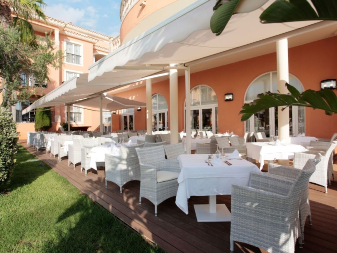Il trattamento previsto è di pernottamento e colazione, con supplemento mezza pensione. La colazione e la cena sono servite a buffet, mentre il pranzo è disponibile à la carte. Il ristorante propone piatti della cucina mediterranea, con opzioni dietetiche e senza glutine. Completano l’offerta una caffetteria, uno snack bar e un bar a bordo piscina, ideali per momenti di relax durante la giornata.