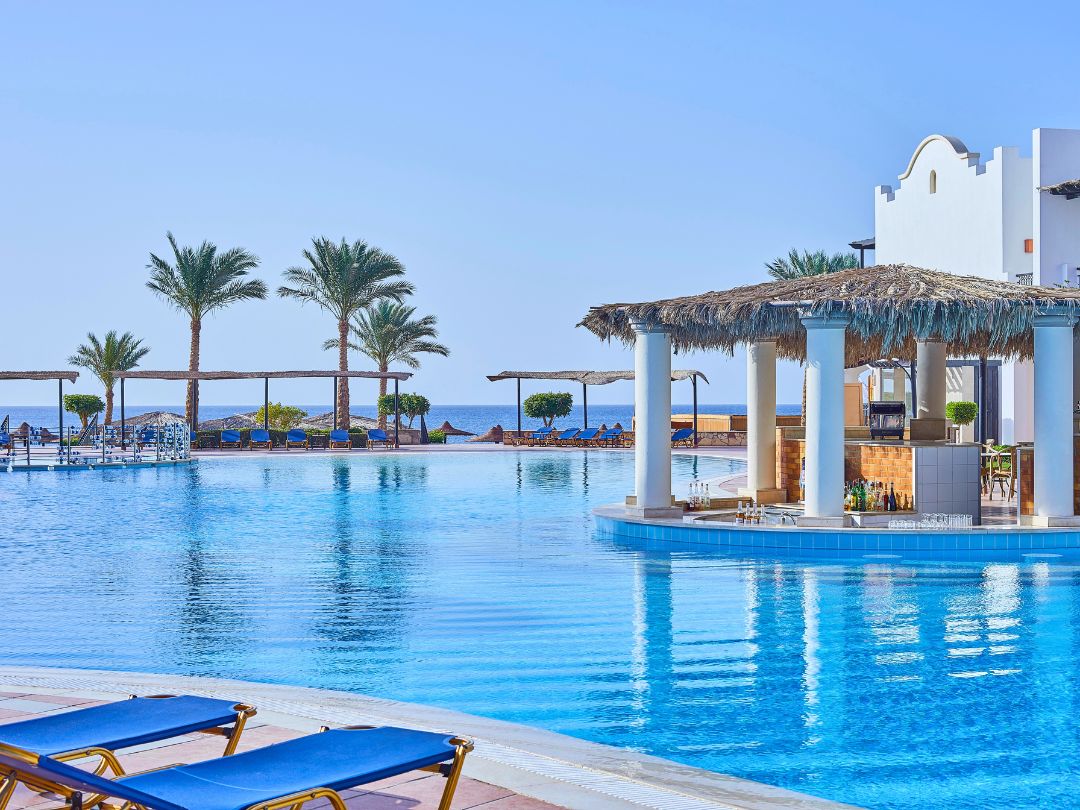 Il trattamento previsto è quello di All Inclusive che comprende colazione, pranzo e cena serviti a buffet al ristorante Le Palmier e bevande analcoliche e alcoliche locali servite in bicchiere ai pasti e fuori pasto. Il resort ospita anche altri ristorante e bar come: Sea Pearl – Ristorante à la carte a pagamento*: ideale per gustare zuppe leggere o insalate per uno spuntino raffinato. Cheers Lobby Bar: offre una varietà di bevande fresche, tè rilassanti o cocktail da sorseggiare ammirando l’incantevole panorama del Sinai e del Mar Rosso.