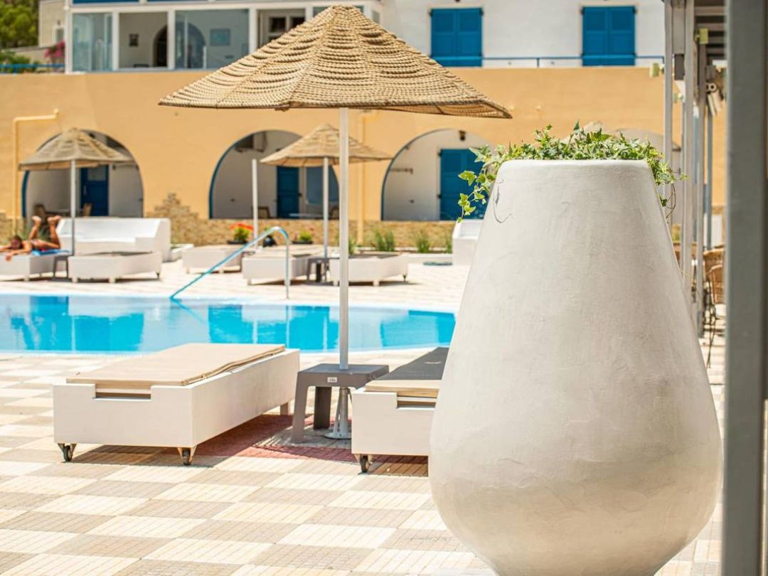 L’hotel si trova nella località di Perissa, a circa 500 metri dal centro. Nelle immediate vicinanze (circa 400 m) sono presenti supermercati, ristoranti, bar e locali notturni. La vivace Fira dista circa 10 km. L’aeroporto di Aeroporto di Santorini si trova a circa 13 km ed è collegato all’hotel tramite servizio navetta a pagamento. Per gli spostamenti sono disponibili fermate autobus e servizi di noleggio auto e motorini.