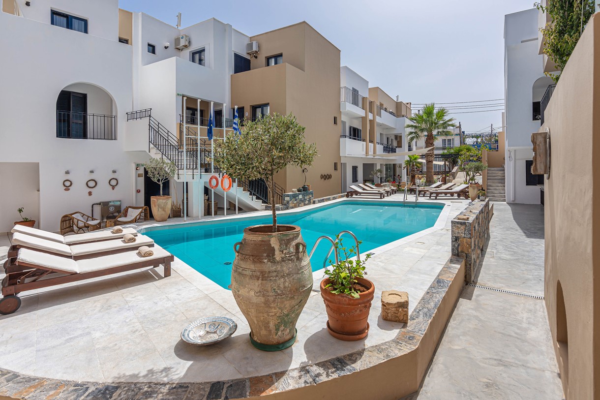 La spiaggia di Stalida è situata a 80 metri dalla struttura. Il servizio spiaggia non è incluso. Di fronte all’hotel ci sono beach bar che offrono il servizio di lettini e ombrelloni ( a pagamento )