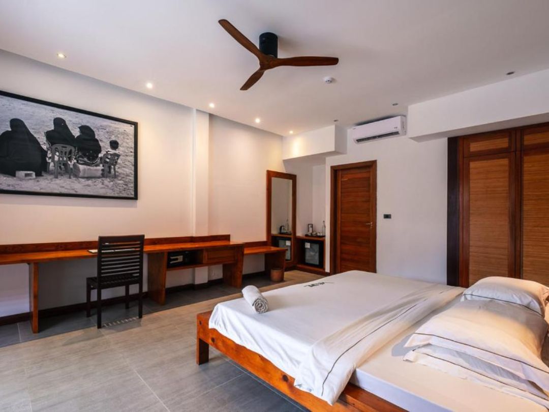 The Barefoot è una struttura che segue i principi ecosostenibili e presta molta attenzione alla cura e conservazione dell’ambiente, coinvolgendo i turisti e tutti gli abitanti dell’isola che lo ospita. La struttura è elegante con ampi spazi comuni, con dettagli ecologici sapientemente creati dall’artista italiano Marcello Chiarenza. Aperto del 2014, è una struttura costruita alle spalle di una meravigliosa foresta tropicale, in una zona delle Maldive incontaminata, dove i panorami tolgono letteralmente il fiato, con lagune dalle mille sfumature, spiagge dorate e barriere coralline ricche di flora e fauna. Un nuovo concetto di vacanza, a contatto con la popolazione locale