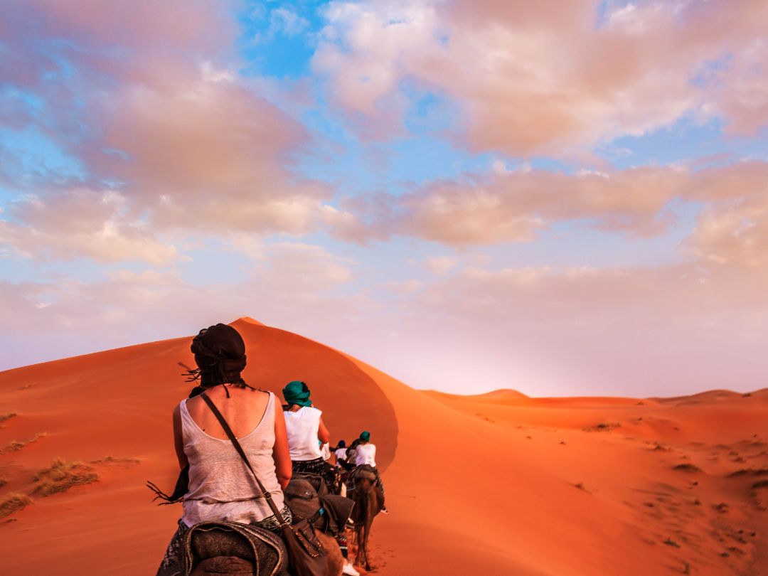 Prima colazione. Partenza per Erfoud passando per Ifrane, una deliziosa località sciistica, e Azrou, un villaggio  berbero molto carino noto per il suo artigianato. Si prosegue per Midelt, un altro villaggio berbero noto per tutte  le località minerarie che circondano la zona. Dopo il pranzo facoltativo (a pagamento), continuazione per Erfoud  via Errachidia e le cascate di acqua blu di Meski. Proseguimento verso Merzouga con fuoristrada 4x4 wd.  Sistemazione in campo tendato, cena tradizionale con piatti berberi e pernottamento godendo di una magnifica  vista sulle dune.