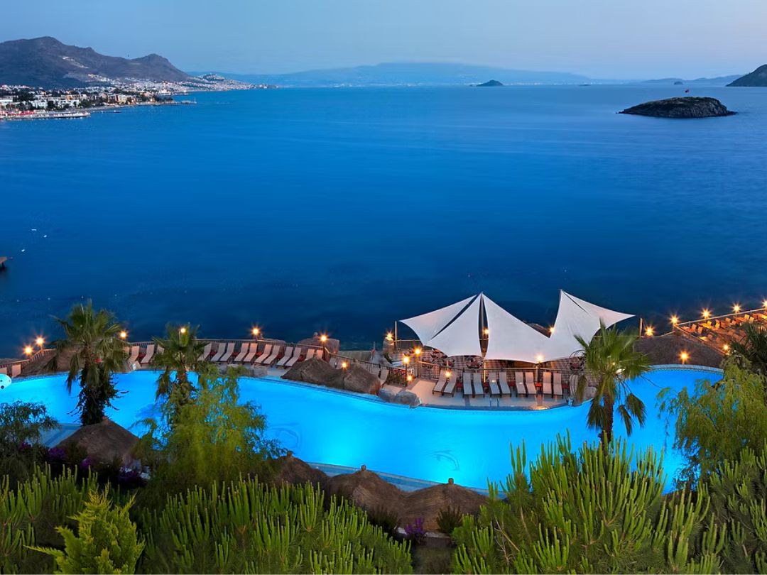 L’hotel si trova a Bodrum, immerso in un ambiente naturale suggestivo tra mare cristallino e paesaggi affascinanti. Offre un perfetto equilibrio tra relax e divertimento, grazie alla vicinanza sia a splendide baie sia alle principali zone di intrattenimento, permettendo di godere del mare di giorno e della vivace vita notturna la sera.