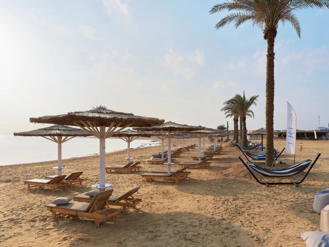 L’ampia spiaggia sabbiosa è attrezzata con lettini e ombrelloni. I teli mare sono disponibili ad uso gratuito. La barriera corallina è vicina ed è raggiungibile a nuoto dalla spiaggia. Non è presente un pontile. È sempre consigliato l’uso di scarpette da scoglio.